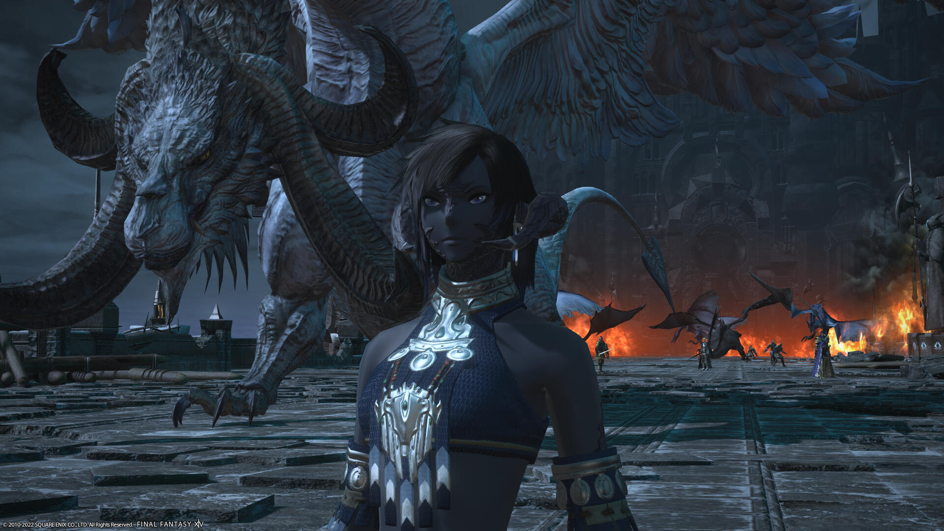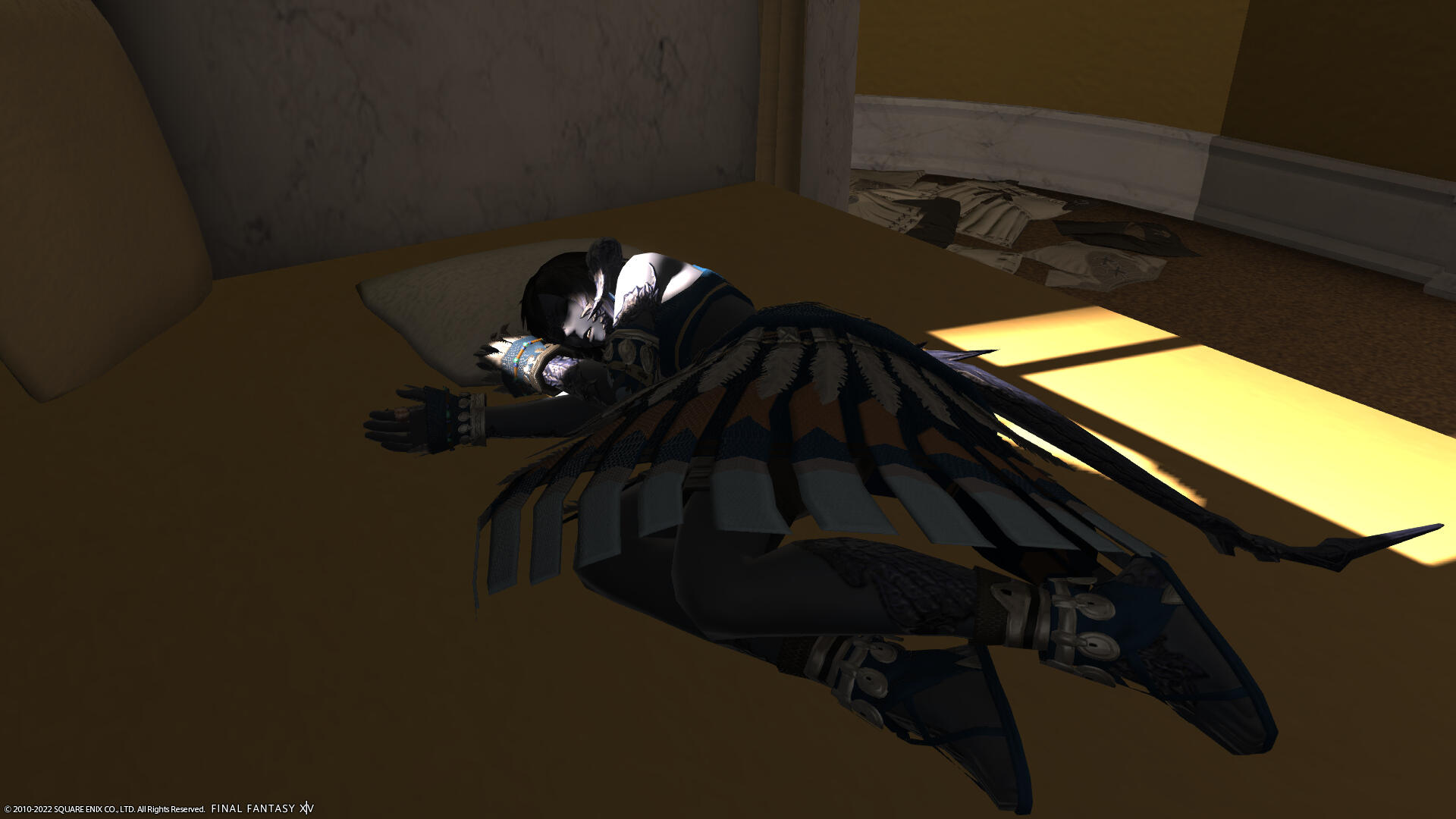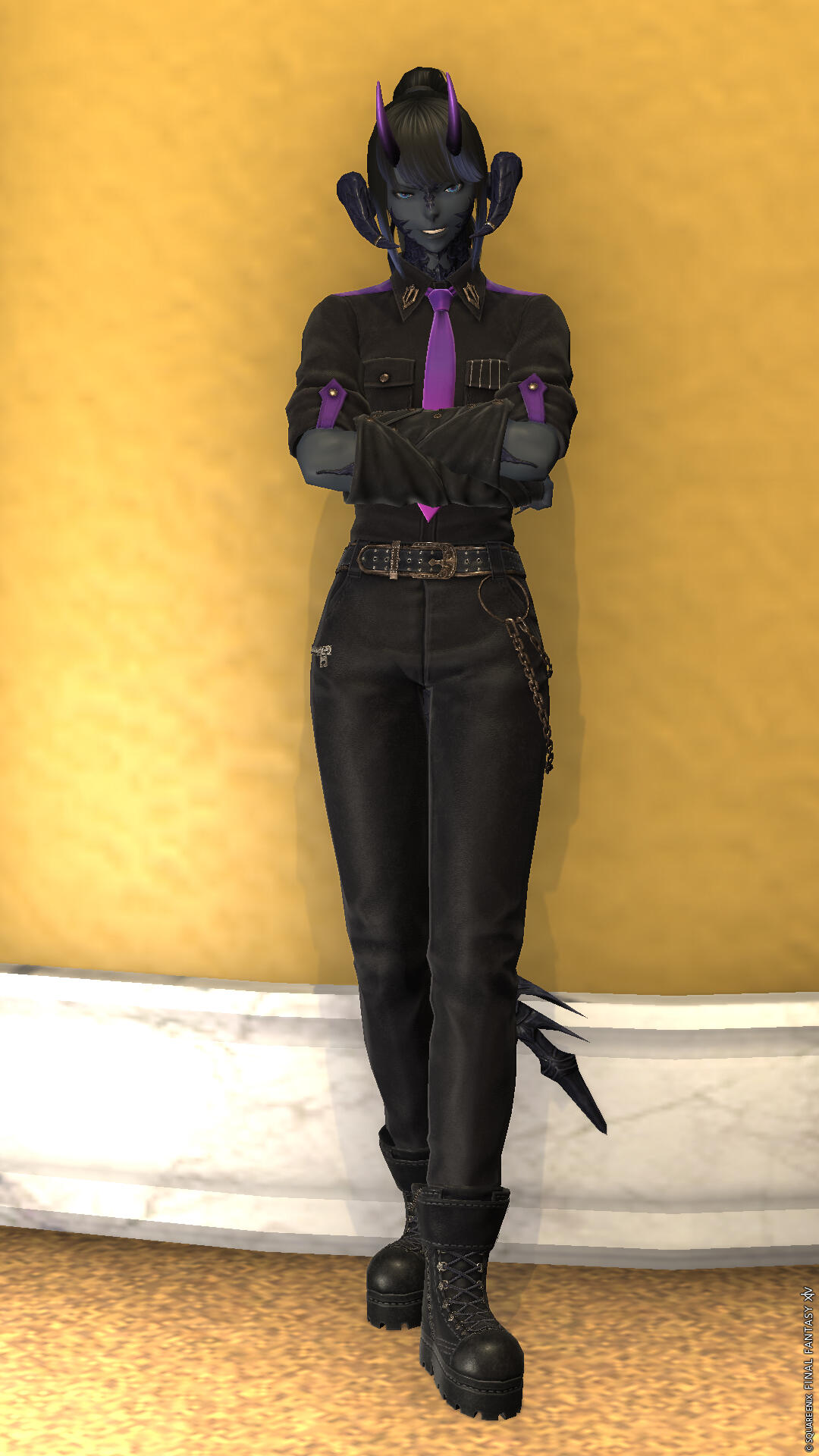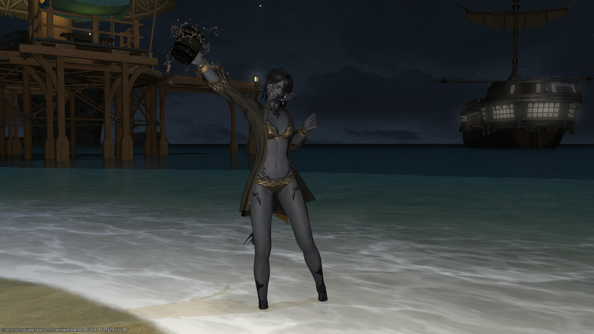 The Last Round: “Never stops raining here, should have never left the steppes.” The small, hooded figure muttered as she ran across the bridges connecting Limsa Lominsa’s upper decks, only stopping when she finally arrived at her destination. Juskia Dotharl peered around The Drowning Wench and took a step towards the stairs that led to the Mizzenmast Inn where she had been staying since arriving in the city. The hooded coat she wore hid her from prying eyes, the only clue to what she might be was the long black scaly tail that poked from the back. As she looked around the circular tavern she paused after a few paces as she considered. “Looks like a quiet night tonight, maybe I can have one or two before I head to my room and dry off.” Two dark blue hands appeared from under the cloak to pull the hood further over her face as she headed towards the bar. Taking one last look around, she sat down and dropped a few gil onto the counter. Noticing the look Baderon was giving her she held up a hand and shook her head. “Don’t worry. Won’t be any trouble tonight. Just having a couple before I go to my room. Besides, the Yellowjackets said I send one more to the infirmary, it doesn't matter if I started it or not, I’m being tossed out of the city. So, no fights tonight, I want a dry place to sleep.” Baderon simply gave her a nod and placed the mug of ale down in front of her. “See that ye don’t lass. Ye been a good ‘elp with all the mess lately. ‘ate to lose another ‘venturer that enjoys the job.” With another shrug, she nods and reaches for the mug taking a long pull from it. It’s not like she could help that the Dotharl reputation had gotten out and people liked picking a fight with her because of it. Of course, she was not one to walk away from said challenges either. At least it looked like the heavy rain was keeping everyone from venturing out this evening. Time passed, one or two mugs soon turned into a half dozen and more. Who was counting? The ale was one thing she had developed a taste for after she had traveled to the west, following her Khatun, Sadu, as part of the Ilsabard Contingent. After the battles calmed down she decided to explore more of this strange land curious about what the world had to offer, what other battles she could enjoy. But the ale, that was one thing she very much enjoyed almost as much as the thrill of battle. Most of the gil she had earned, that wasn’t used to pay for her room and food, she spent down here sampling all the different drinks they had or the occasional game of chance. As the night wore on the rain let up, and soon more and more people were coming in. At this point Juskia seemed not to care anymore and was just enjoying her evening, now ordering a large plate of different meats, cheeses, and bread to go with the ale. She might be small in frame, but it seemed she did handle her alcohol well, the food would only help, that and she was hungry. Of course if she hadn’t been drinking as much she might have noticed the very type of people she was trying to avoid wandering in. Two boisterous groups of roegadyn and hyur were in a very heated game of dice off to one side of an inn. When suddenly one of them quickly stands and tosses the table to the side. “Dem dice are loaded!” Juskia’s head snaps up and looks towards the crowd which was getting louder by the moment. It didn’t take her or anyone else long to figure out what was about to happen. With a heavy sigh she downs the mug of ale and grabs a loaf of bread, tearing out the center she stuffs as much of the meat and cheese that was left inside and waves to Baderon who was already pointing a finger at her to not get involved. “I’ll be taking this up to my room. Hope this won’t be too much of a mess for you.” She said with a smile. With that as the fight inevitably broke out Juskia quickly made her way towards the stairwell that would carry her to her room. At least that was the plan. But fate, or maybe dumb luck, had a different idea as an errant bottle flew across the room to smash into the back of the diminutive figure’s head. The force of the impact shattered the glass and sent her stumbling forward, and her makeshift sandwich to the ground. A rand reached up to feel the back of her head as she stood there quietly for a few seconds, her shoulders heaving underneath the cloak before she finally spun on her heel towards the group. “All right. Yah wants me so much! Was going to let you lot off easy tonight!” She yells out her hand grabbing the edge of the cloak, a pale whitish light appearing from underneath. “But now my turn for some fun! Sadu to me!” She yells out as she pulls off the cloak and tosses it aside. Standing there was the small Xaela, dark blue almost black skin adorned with black scales and horns. She had shoulder length black hair with streaks of blue running through it. She wore an angry scowl, but her lips were turned up with a frightening grin. Under the cloak she was dressed in the typical Dotharl garb of light cloth and leather, adorned with blue feathers. The only thing that stood out were the long leather forearm covers which were now covered with brightly glowing runes. Beside her seemingly out of nowhere the aether coalesced and a light blue carbuncle appeared at her side. “Get em!” She called out to the magical beast as it charged into the group of people. Unlike most of these aetherical beings, this carbuncle fought with tooth and claw. It leapt up onto the first person it ran into only to have a few glowing balls of force smacking into the fighters indiscriminately around it. With a laugh she waved a hand over one forearm, the glowing aether forming into another ball as she threw it too into the crowd. The chilling laugh only grew as it sent a few people flying. As dotharl and carbuncle entered the fray a few voices yelled out in alarm as they realized not only there were more people coming into the fight, but t