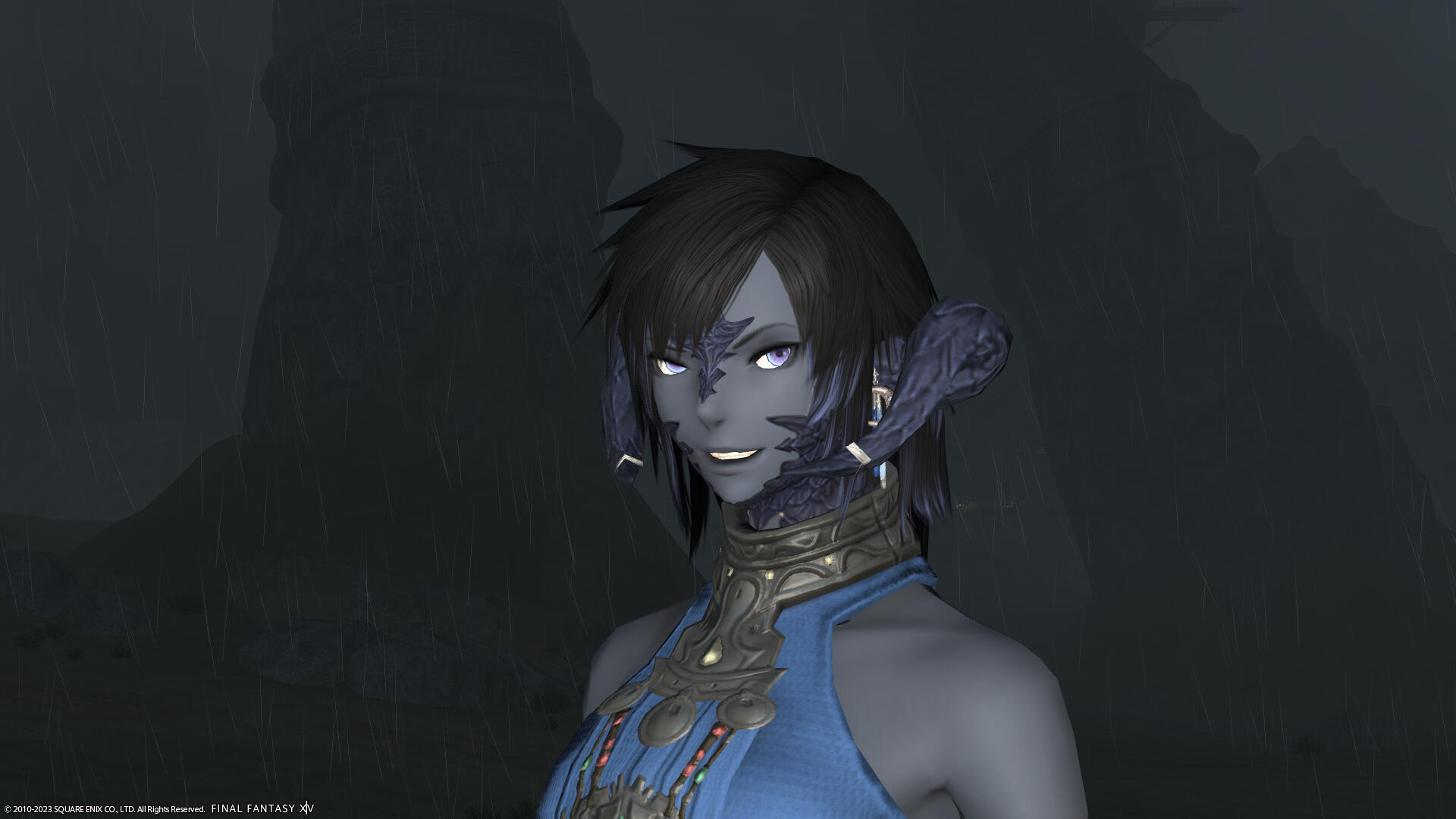 The Times Before: When she was born, the elders of the clan saw the spirit of a great fighter and wanderer Juskia in her eyes. The Juskia’s of the past had been known to not only be great hand-to-hand fighters, but also travelers, curious about the world outside the steppes. It was not uncommon for them to be gone for cycles before returning with stories of their adventures. Sometimes though they never returned at all, as with the previous Juskia. So, with the revelation that the spirit now rested within the child the tribe knew it once again had lost one of its warriors. From that day on, as she grew up, she was trained to fight, and like all good Dotharl, not to fear death. She was a bit of a brat and a bully as a child, pushing around and getting into fights with children of other tribes. One particular Xaela was a favorite target, Silun of the Uyagir. Silun was a meek child, quiet and reserved, seemingly the polar opposite of Juskia. The bullying continued for cycles as the two grew up, until Silun had enough and blasted Juskia with a surprising large burst of aetheric energy. Shocked by the sudden show of defiance from her former victim Juskia became insanely curious about how Silun was able to do that. It took another cycle of begging and apologizing, but eventually Silun relented to the former bully and started to teach Juskia how to use her own aether. The two former adversaries now became close, nearly inseparable friends with Juskia dragging Silun across the Steppes to go on adventures and get into trouble. Of course, the young Dotharl prided herself whenever there was danger, it never got close enough to Silun for any harm ever to come to her. As the two came of age, their friendship grew even closer and the two became lovers. Their bond to each other is shown as they each took one of a set of earrings, a small blue aether crystal. Juskia had grown into a strong warrior combining the fighting spirit of her past and the aetheric teachings of Silun. She was chosen to travel with Sadu as part of the Dotharl delegation to join the Ilsabard Contingent. So excited to go on a grand adventure she desperately wanted Silun to go with her. Silun resisted for days, trying to convince Juskia to stay until one night she awoke from a nightmare, one that shook her to her very core. She wouldn’t say what the nightmare was but told Juskia that if she went on with her adventure she would come along. Of course, this filled Juskia with joy even though Silun seemed terrified. During the battle with the Telophoroi Silun stayed closer than normal to Juskia. Juskia was in her element though, relishing in the battle and paid little mind to the soft words of Silun. “It’s just as I saw.” When the Blasphemies made their appearance, the battle took a turn against them. Juskia was pushed to her limit fighting against them. Silun tried to convince her to retreat but Juskia wouldn’t listen and eventually took a near fatal blow and was tossed aside. Silun destroyed the monster with another large blast of aether, but from her vision she thought Juskia dead and lost hope. Juskia’s eyes opened just in time to see Silun enveloped in black smoke before being replaced with a monstrosity. For the first time the Dotharl felt fear before she blacked out only to wake up days later in the makeshift infirmary at Camp Broken Glass, the other blue crystal earing clasped tightly in her hand.
